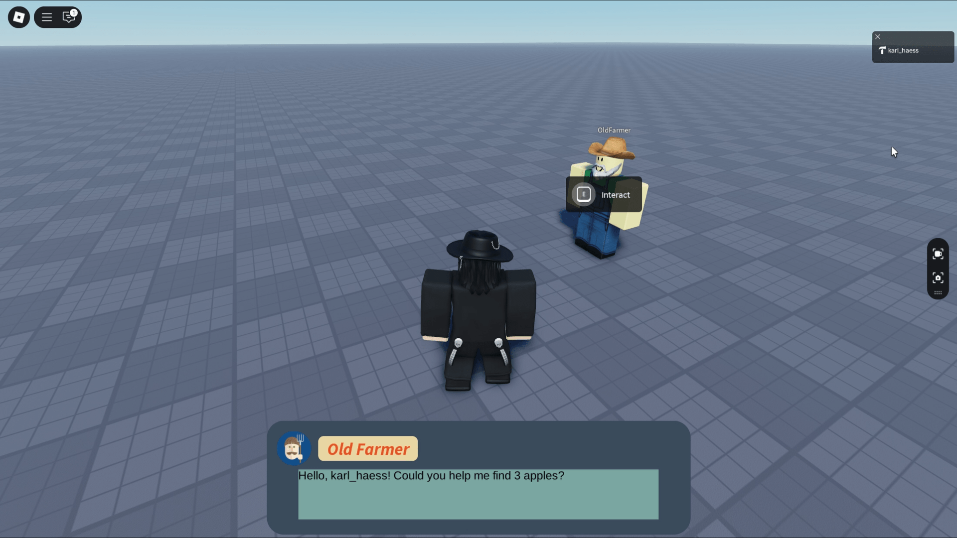 Click-to-talk NPCs with multi-page text, branching choices, and quest-trigger hooks.